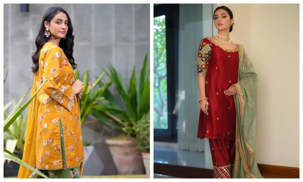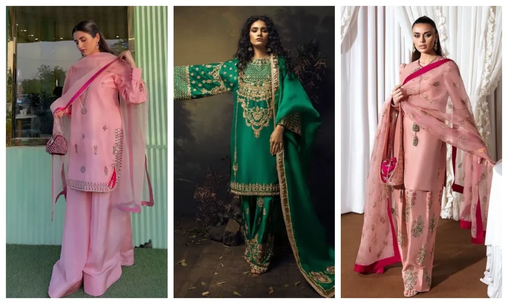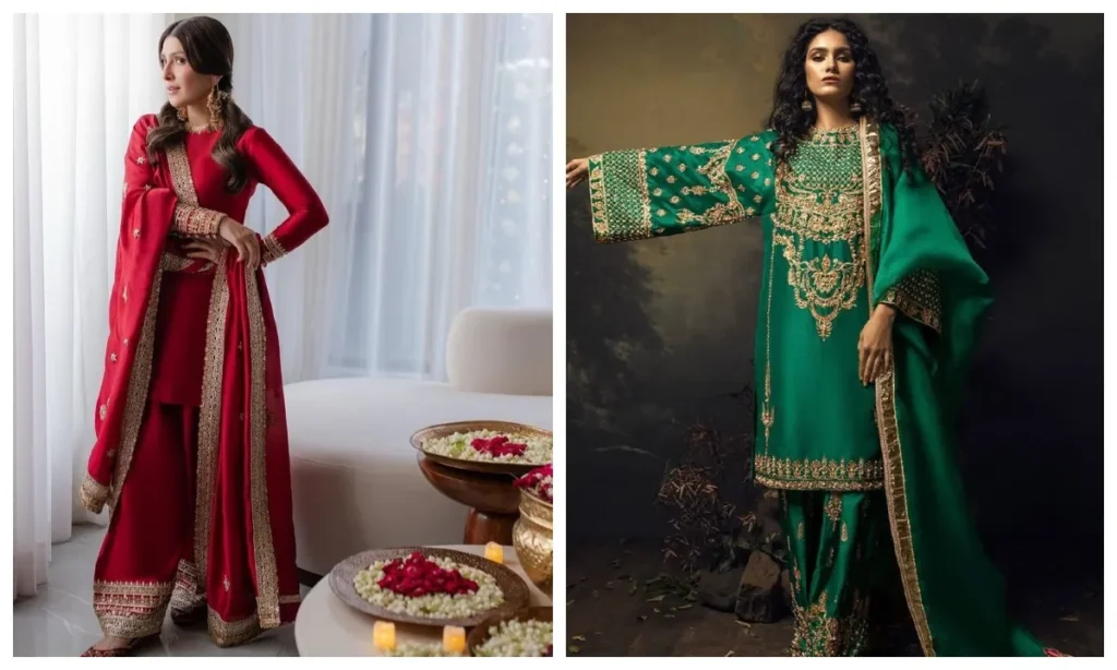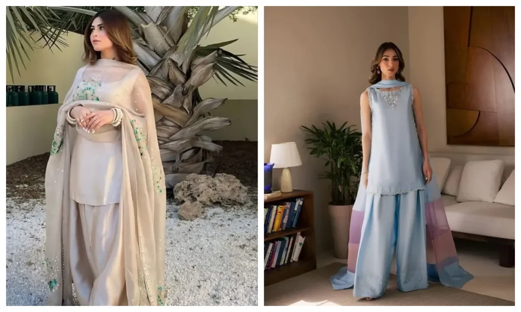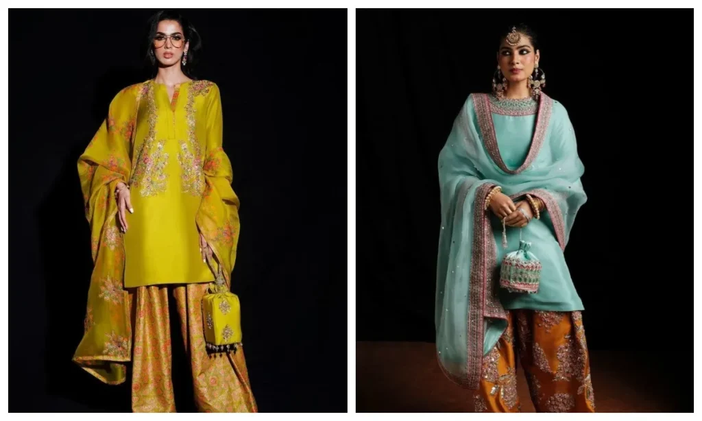अगर आप लाइट कलर्स पसंद करती हैं, तो पाउडर ब्लू या मिंट ग्रीन कलर का फर्शी सलवार सूट ट्राई करें. लखनवी चिकनकारी कुर्ती के साथ सिल्क फर्शी सलवार आपको सॉफ्ट और सटल फेस्टिव लुक देगी. ये दिन के फंक्शन के लिए बेस्ट लुक है.