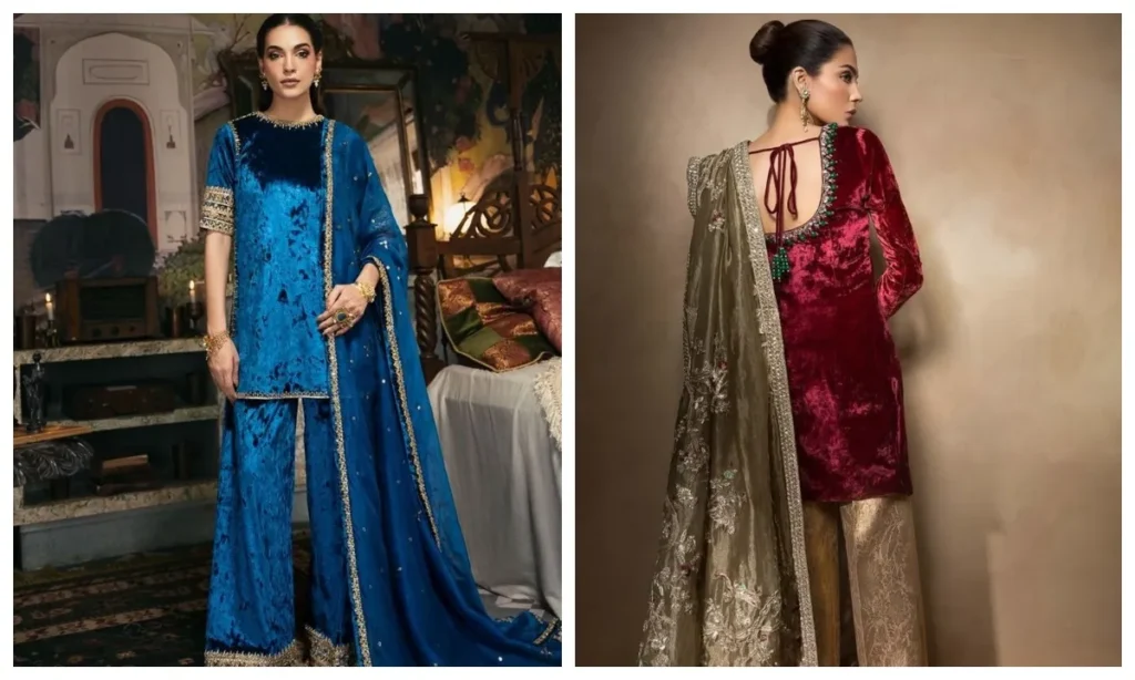 त्योहार पर अगर आप पर ग्लैमरस दिखना चाहती हैं, तो रिच वेलवेट फर्शी सूट बढ़िया ऑप्शन है. मैरून, रॉयल ब्लू, पिंक या एमराल्ड ग्रीन कलर्स में वेलवेट कुर्ती के साथ हैवी बॉर्डर वाली फर्शी सलवार पहनें.