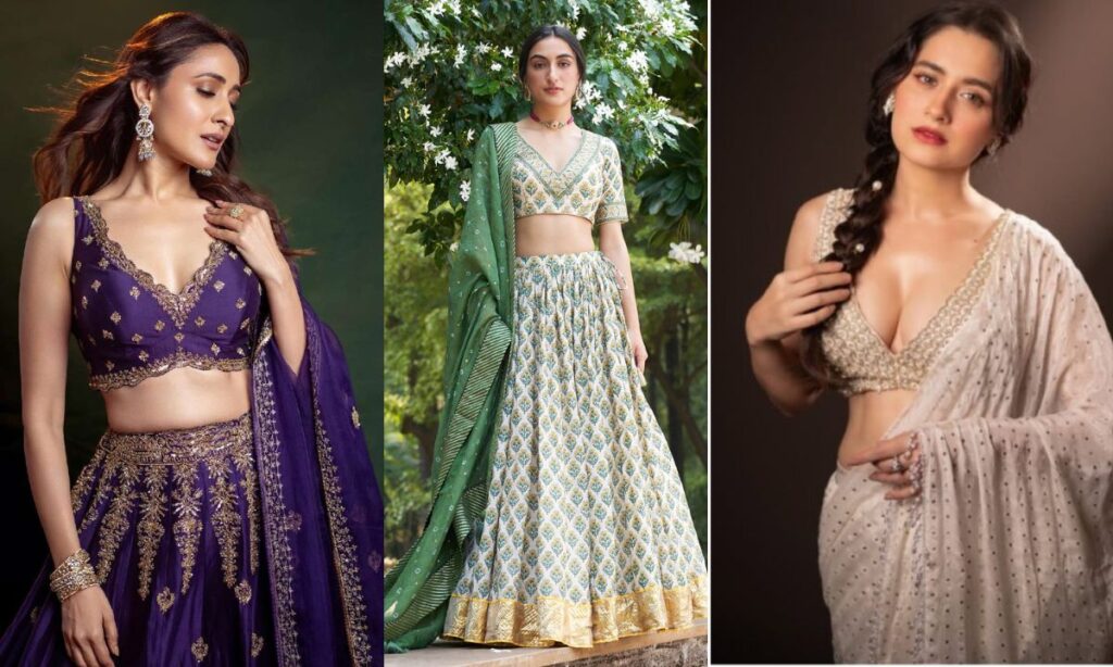 चौड़ी कंधे वाली लड़कियों के लिए इस तरह के डीप नेक ब्लाउज बिल्कुल परफेक्ट होते हैं. इन्हें अगर आप साड़ी और लहंगे के साथ पेयर कर सकती हैं.