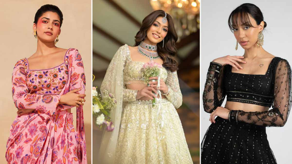 ब्रॉड शोल्डर के लिए स्क्वायर नेक ब्लाउज डिजाइन ट्राई कर सकती हैं. ये दिखने में बेहद आकर्षित होते हैं. इस तरह के डिजाइन सूट, साड़ी और लहंगे के लिए एकदम सही है.