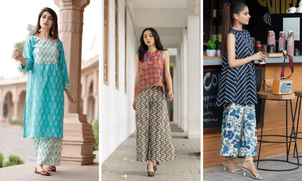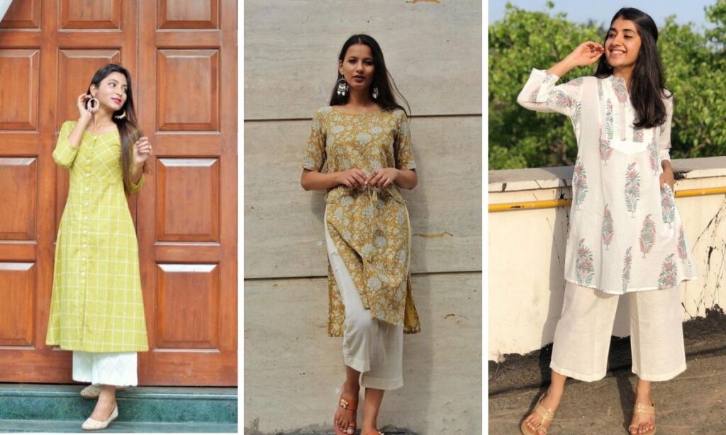 गर्मियों में प्रिंटेड कुर्तियों के साथ अगर आप मैचिंग या कंट्रास्ट प्रिंट वाले पलाजो पहनेंगी तो ये आपको एकदम ट्रेंडी लुक देंगे. फ्लोरल या बुटी प्रिंट्स चुनें और गर्मियों के लिए स्टाइल और कंफर्ट दोनों पाएं.