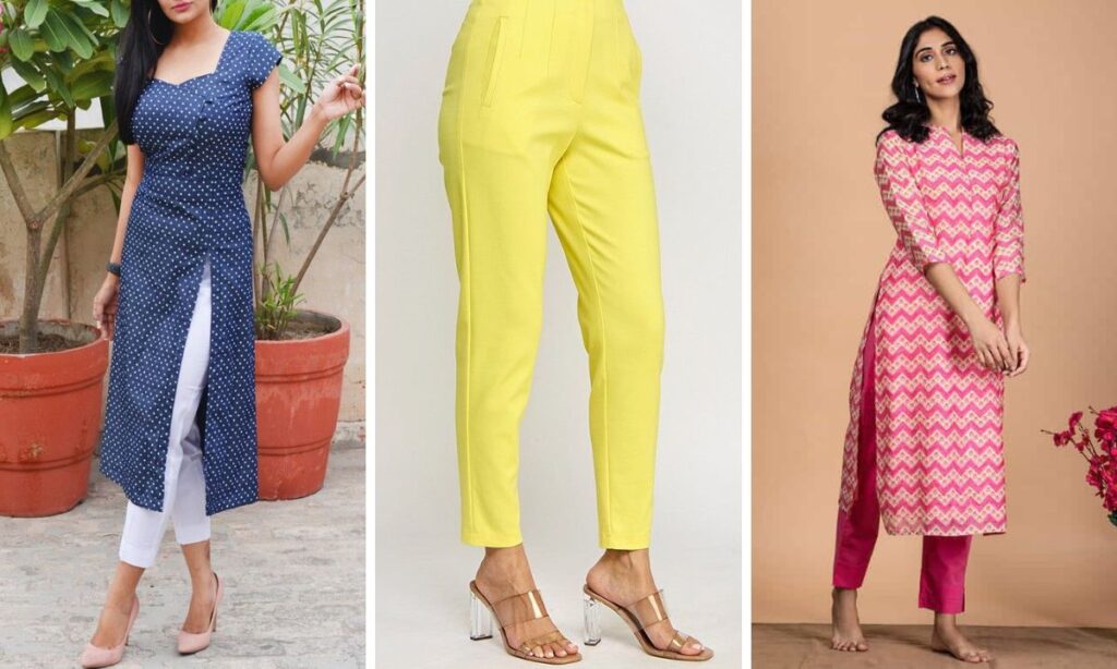 कॉलेज या ऑफिस जाने वाली लड़कियों के लिए सिगरेट पैंट एक स्टाइल स्टेपल बन चुके हैं. ये A-लाइन या स्ट्रेट फिट कुर्तियों के साथ परफेक्ट बैठते हैं और आपको देते हैं एक शार्प और स्लीक लुक. फॉर्मल मीटिंग से लेकर कैजुअल ब्रंच तक इनका हर जगह जलवा है.