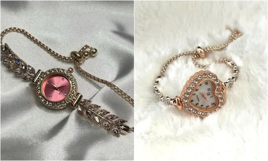 अगर आप साड़ी या लहंगे के साथ मिनिमल और ग्लैमरस लुक चाहती हैं, तो रोज़ गोल्ड चैन वॉच ब्रेसलेट बेस्ट है. ये हर स्किन टोन पर सूट करती है और पूरे आउटफिट को एक रिच टच भी देती है. आप इसे ऑफिस वियर के साथ भी पेयर कर सकती हैं.