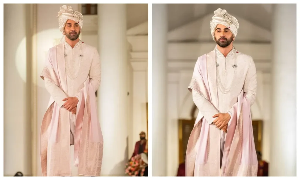 रणबीर कपूर का फैशन हमेशा सिंपल और रॉयल का कॉम्बिनेशन होता है. हाल ही में एक शो के लिए रणबीर ने सिल्क की आइवरी कलर की शेरवानी पहनी थी, जिस पर हाथ से की गई खूबसूरत कढ़ाई का काम था. डिजाइनर तरुण तहिलियानी की इस शेरवानी में में रणबीर बिल्कुल परफेक्ट दिख रहे थे. अगर आपको भी अपनी शादी में ट्रेडिशनल और मॉडर्न लुक चाहिए तो, इस तरह की शेरवानी ट्राई कर सकते हैं.