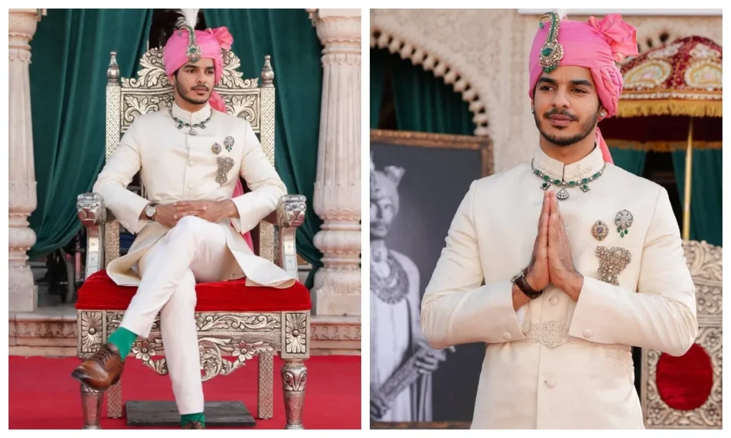 ईशान खट्टर ने इस सीजन का सबसे वर्सेटाइल लुक कैरी किया है. जैकट और पैंट का ये कॉम्बिनेशन एकदम फ्रेश और कूल वाइब देता है. ये ट्रेडिशनल शेरवानी और मॉडर्न सूट के बीच का एक बेहतरीन बैलेंस है. सिल्क जैकेट और पैंट सेट बिल्कुल वैसा ही है, जिसे आप मेहंदी, कॉकटेल या रिसेप्शन, किसी भी मौके पर बिना सोचे पहन सकते हैं.
