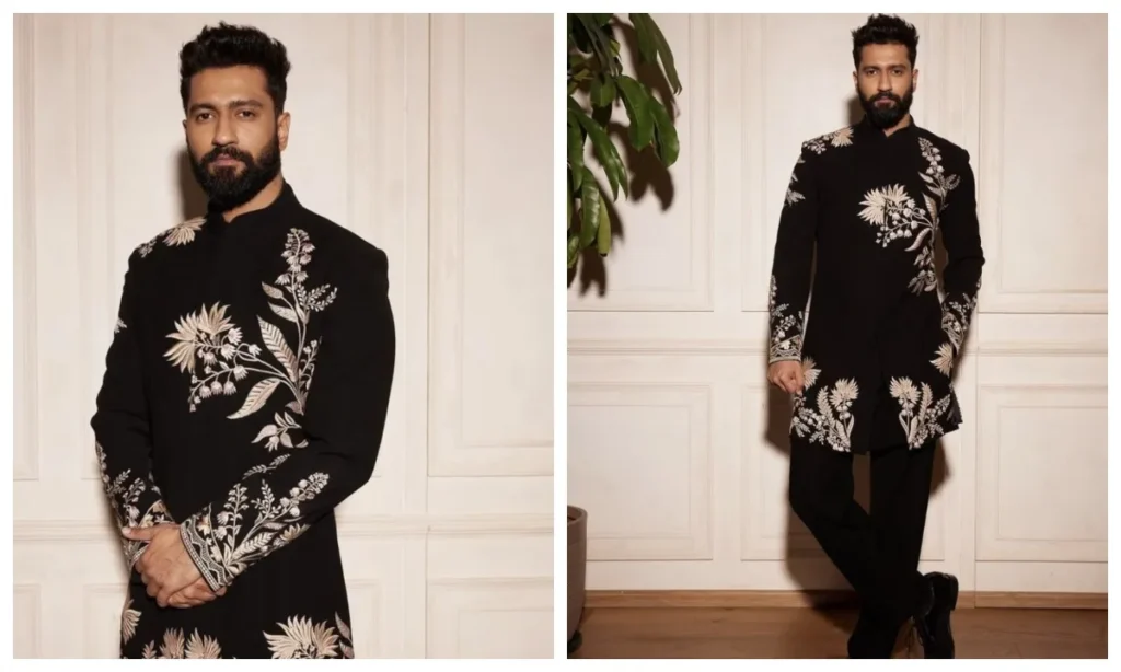 विक्की कौशल ने साबित कर दिया कि कभी-कभी बिना किसी चमक-धमक के भी आप सबसे अलग दिख सकते हैं. उन्होंने एक ही कलर की शेरवानी पहनी जिस पर बारीक फ्लोरल प्रिंट था. ये दिखने में बहुत ही क्लासी और रॉयल लगता है. एक्टर की मोनोक्रोम फ्लोरल शेरवानी उन लड़कों के लिए है जो लेस इज मोर की पॉलिसी फॉलो करते हैं.