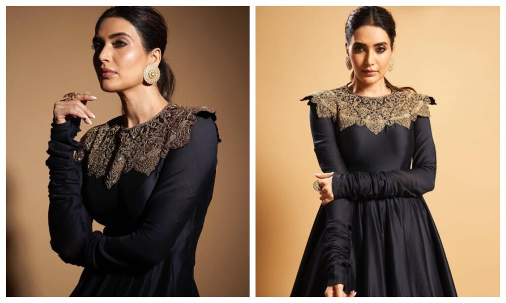 करिश्मा तन्ना का ब्लैक अनारकली कुर्ता सेट वाकई में कमाल लग रहा था. सूट के गले पर एमरॉयड्री पैच काफी शानदार था. उन्होंने अपने सूट लुक को जड़ाऊ सटड्स के साथ कम्पलीट किया.