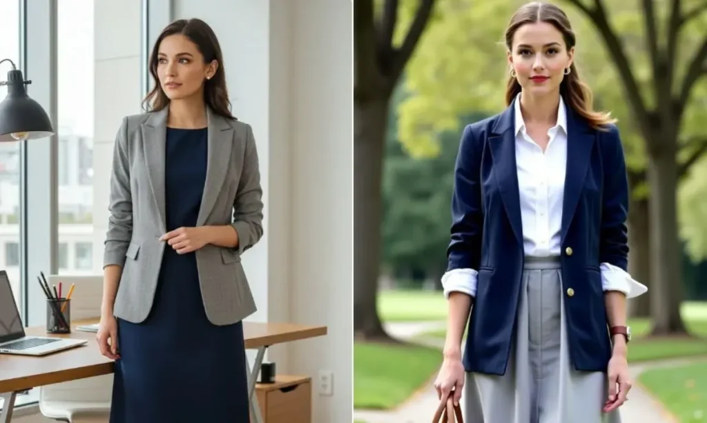 नेवी ब्लू बेहद ही रॉयल कलर होता है. इसके साथ ग्रे का कॉम्बिनेशन प्रोफेशनल और फैशनेबल होता है. नेवी ब्लू टॉप या शर्ट के साथ ग्रे ट्राउजर या ग्रे ब्लेजर बहुत सिंपल और अट्रैक्टिव लगते हैं. गर्मियों के लिए ये कलर कॉम्बिनेशन बहुत अच्छा होता है.