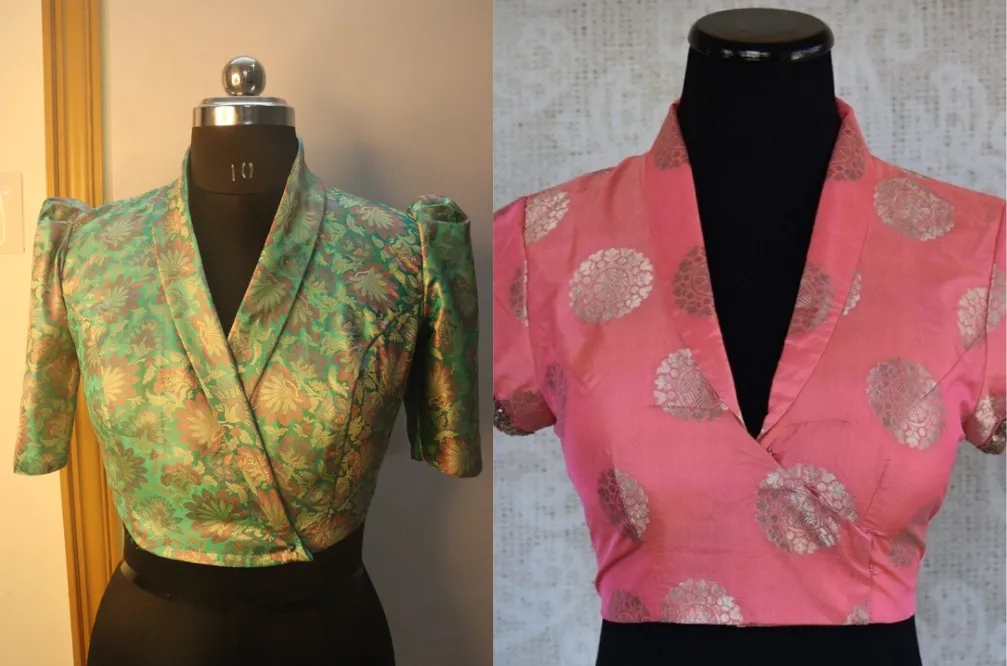 बनारसी साड़ियों के लिए यह शॉल बलाउज डिजाइन बेस्ट रहेगा. यह डिजाइन काफी यूनीक है. यह आपकी क्लासी क्लासी बनारसी साड़ी में एक मॉडर्न लेकिन रॉयल टच ऐड करेगा. आप इसकी स्लीव्स को पफी या सिंपल दोनों डिजाइन में बनवा सकती हैं.