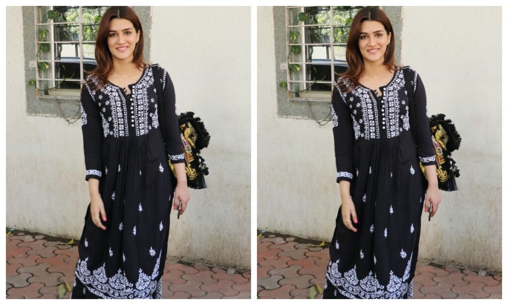 एक्ट्रेस कृति सेनन का ये लुक समर सीजन के लिए परफेक्ट है. उन्होंने ब्लैक कलर के चिकनकारी कुर्ता सेट को बहुत ही सिंपल तरीके से कैरी किया. कोल्हापुरी चप्पल और नो मेकअप लुक के साथ कृति ने इस लुक को कैरी किया.