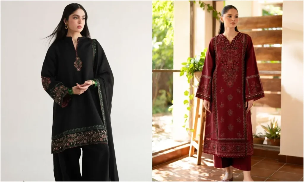 कश्मीरी सूट की खास पहचान उसकी बारीक कढ़ाई से होती है. पश्मीना या ऊनी फैब्रिक पर की गई ट्रेडिशनल कढ़ाई इसे रॉयल लुक देती है. आप इस तरह के कुर्ता सेट को विंटर वेडिंग से लेकर किसी भी फंक्शन में पहन सकती हैं.