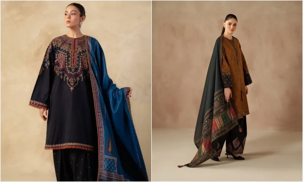 कश्मीरी शॉल के साथ पहना गया सूट सर्दियों में बहुत शाही लुक देता है. इस लुक के साथ पतली सिल्वर चूड़ियों का सेट काफी अच्छा लगता है. विंटर में अपने ओवरऑल फैशन अपीयरेंस को हाई करने के लिए इस तरह का कुर्ता सेट ट्राई कर सकती हैं.