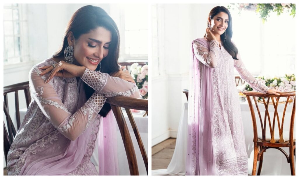पाकिस्तानी एक्ट्रेस आयजा खान इस लैवेंडर कलर के एमरॉयड्री सूट सेट में बला की खूबसूरत लग रही हैं. आप भी उनके जैसा लुक आसानी से क्रिएट कर सकती हैं.
