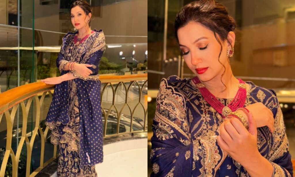 गौहर खान का पर्पल कलर वाला ग़रारा सेट भारी एम्ब्रॉयडरी के साथ आता है जिसमें शॉर्ट कुर्ती, मैचिंग गरारा और दुपट्टा शामिल है. उन्होंने इस लुक को रूबी नेकलेस और एक स्लीक मेसी बन के साथ स्टाइल किया है. यह लुक बकरीद के लिए रॉयल और ट्रेडिशनल दोनों लगेगा.