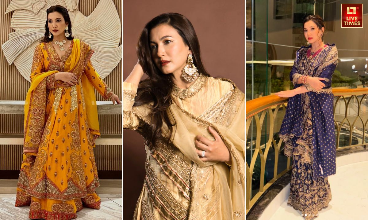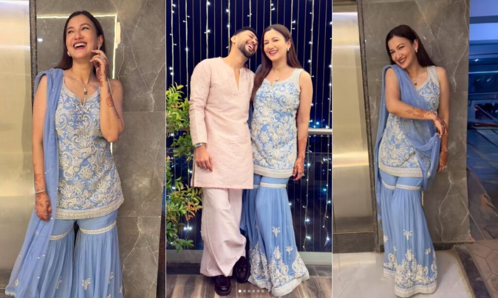 अगर आप गोल्डन शेड्स पसंद नहीं करतीं, तो गौहर का यह लाइट ब्लू ग़रारा सूट आपके लिए एकदम बेस्ट है. इसमें सिल्वर धागों से की गई बारीक कढ़ाई है. गौहर ने इसे मिनिमल जूलरी और स्ट्रेट हेयर के साथ पेयर किया है. यह लुक सादगी और स्टाइल का परफेक्ट कॉम्बिनेशन है.