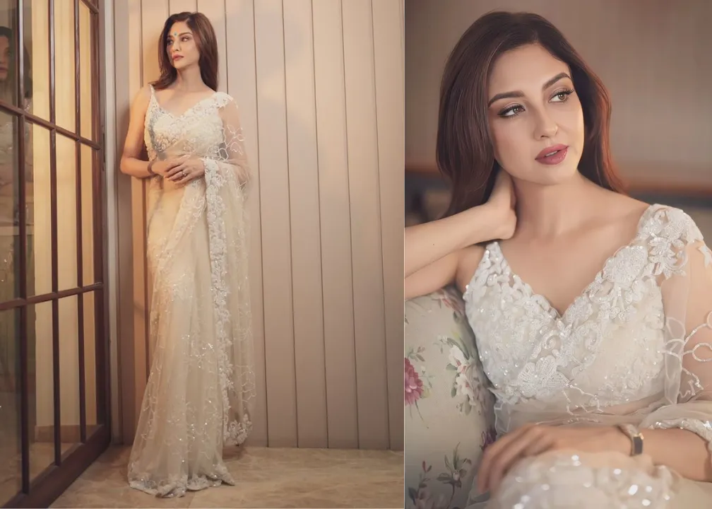 सौम्या टंडन की क्रीम कलर की साड़ी भी एंगेजमेंट में पहनने के लिए अच्छा ऑप्शन है. व्हाइट कलर एंगेजमेंट की रात को सबसे ज्यादा शाइन करेगा इसलिए सबकी नजर आपके ऊपर ही होगी. आप कोई और पैटर्न वाला सीक्वेंस वर्क भी पहन सकती हैं. इस तरह की साड़ियां रॉयल और क्लासी लुक देती हैं
