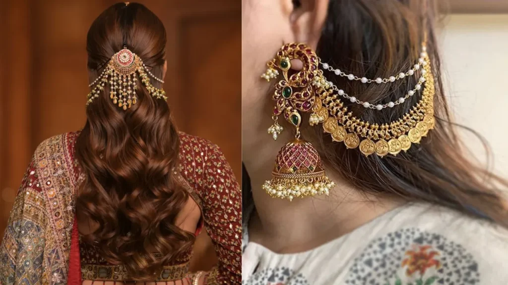 ये मोती चेन झुमके आपको रॉयल वाइब देते हैं. कान के पीछ से बालो में लगने वाले यह झुमके आपके आउटफिट को एन्हांस कर देते हैं. इससे आपका एक प्यारा सा हेयर स्टाइल भी बन जाता है. आपको इसमें अलग-अलग तरह के डिजाइन मिल जाएंगे. यह झुमके साड़ी और लहंगे पर बहुत जचेंगे.
