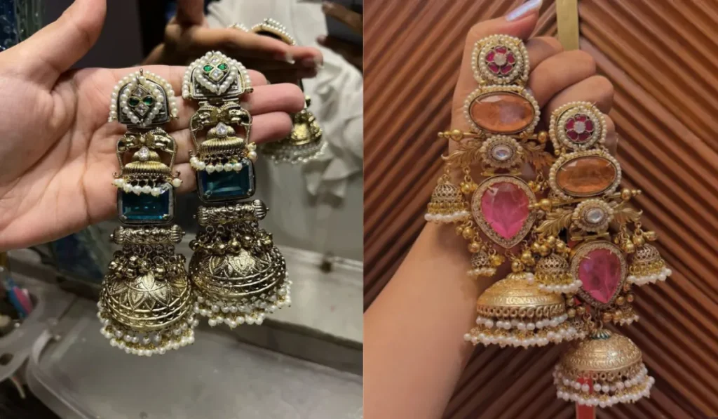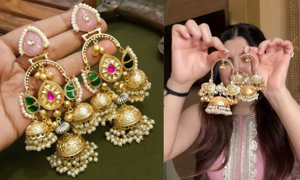यह कश्मीरी चेन वाले झुमके बहुत ही यूनीक लगते हैं. इस तरह का डिजाइन जल्दी नहीं मिलता, लेकिन यह बहुत सुंदर लगता है. अगर आप यह झुमके अपने आउटफिट के साथ पेयर करती हैं, तो सभी की नजरें आपके ऊपर ही होंगी. यह झुमके आपको भीड़ में सबसे अलग दिखाएंगे.