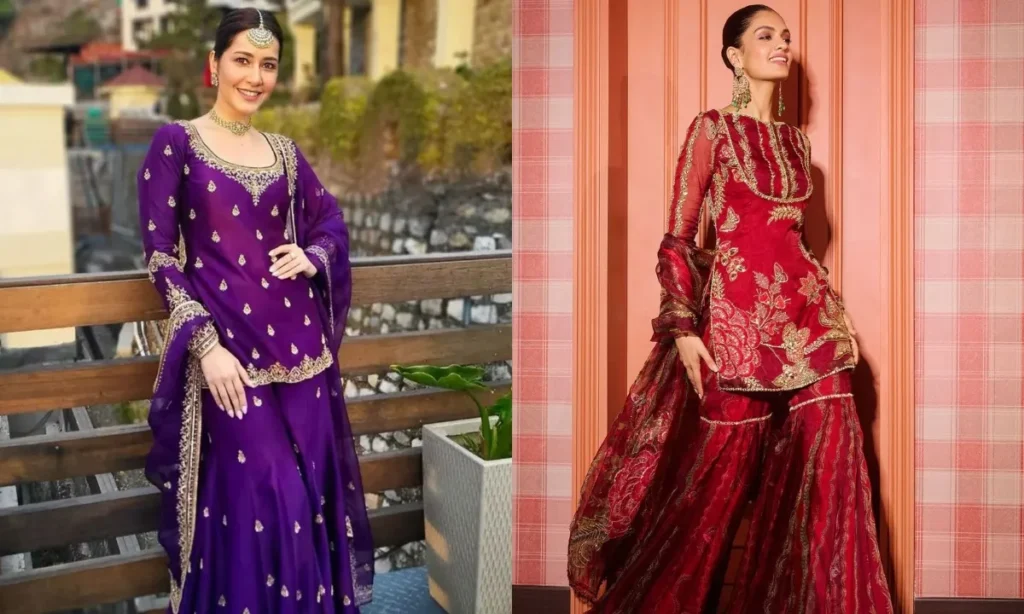 शरारा सूट पिछले कुछ टाइम से वेडिंग फंक्शन्स के लिए लड़कियों की पहली पसंद बने हुए हैं. छोटे कुर्ते के साथ घेरेदार शरारा न सिर्फ पहनने में कंफर्टेबल होता है, बल्कि ये आपको एक हैवी लहंगे जैसा ही लुक देता है.