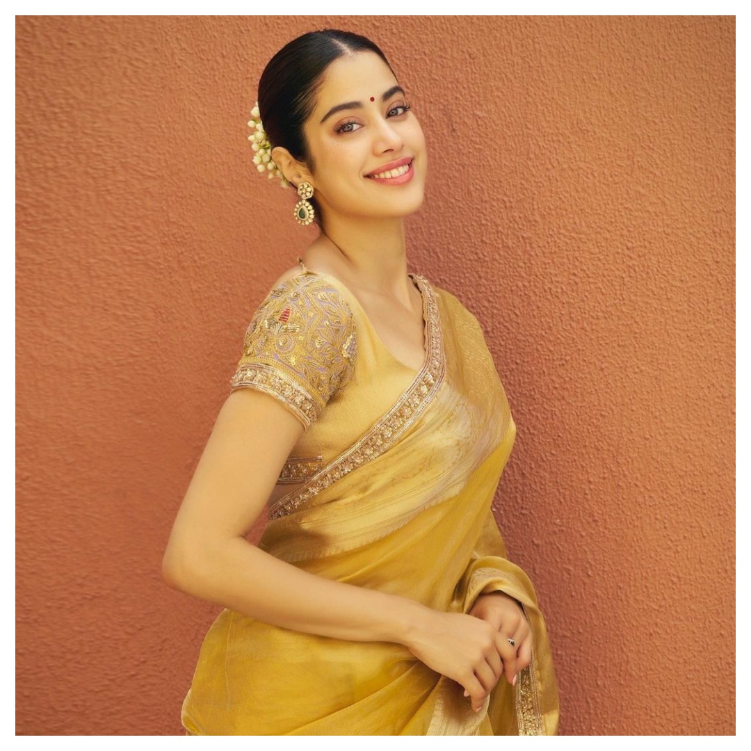 जाह्नवी कपूर इस सिंपल सिल्क येलो साड़ी में हमेशा की तरह स्टाइलिश और ब्यूटीफुल दिख रही हैं. इस गोल्डन बॉर्डर वाली इस साड़ी को उन्होंने मैचिंग ब्लाउज के साथ पेयर किया. वहीं, लॉन्ग गोल्डन ईयररिंग्स, मिनिमल मेकअप और खुले बालों ने जाह्नवी के लुक को पूरा किया.