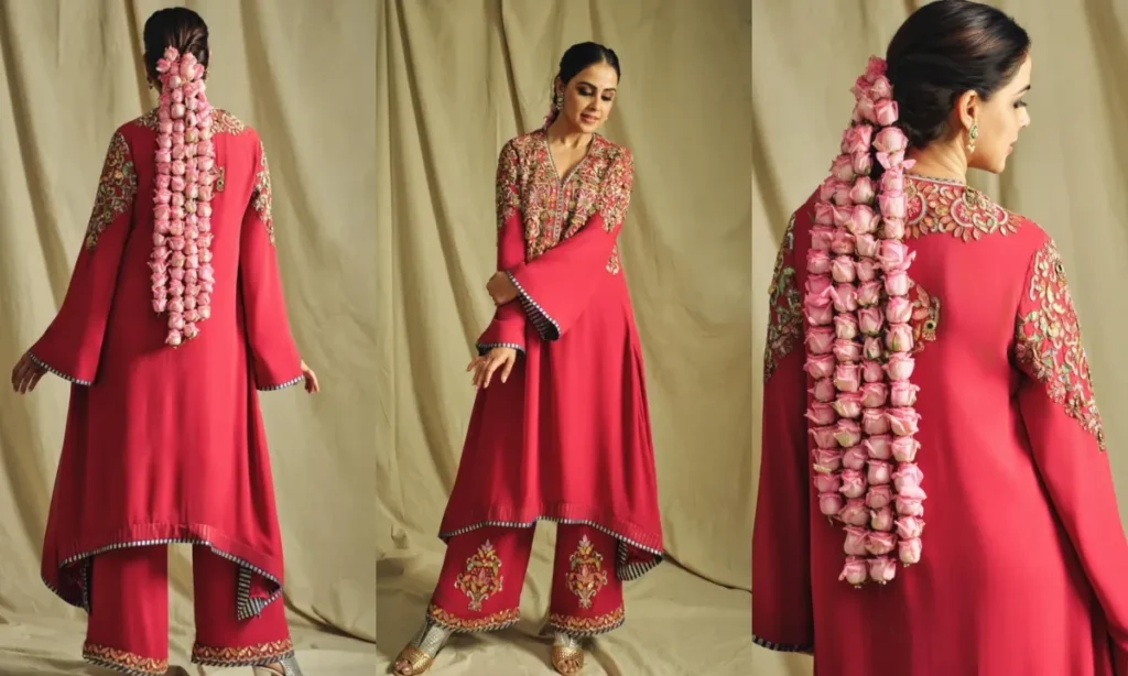जेनेलिया देशमुख का ये पिंक सूट लुक सोशल मीडिया पर काफी वायरल हुआ था. उन्होंने इस सूट को परफेक्ट मेकअप और स्लीक हेयरस्टाइल के साथ कम्पलीट किया. जेनेलिया के लुक का सबसे बड़ा हाइलाइट था उनका गुलाब के फूलों से बना गजरा. आप भी इस तरह का हेयरस्टाइल किसी भी फंक्शन में ट्राई कर सकती हैं.