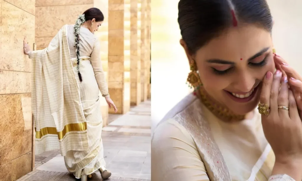 जेनेलिया देशमुख के ट्रेडिशनल लुक सोशल मीडिया पर काफी वायरल होते हैं. क्रीम कलर की कॉटन सिल्क साड़ी में वो बला की खूबसूरत लग रही हैं. साड़ी को उन्होंने मैचिंग फुल स्लीव ब्लाउज, गोल्ड जूलरी और लाइट मेकअप के साथ स्टाइल किया. स्लीक चोटी बनाकर जेनेलिया ने अपने बालों को फूलों से सजाया.