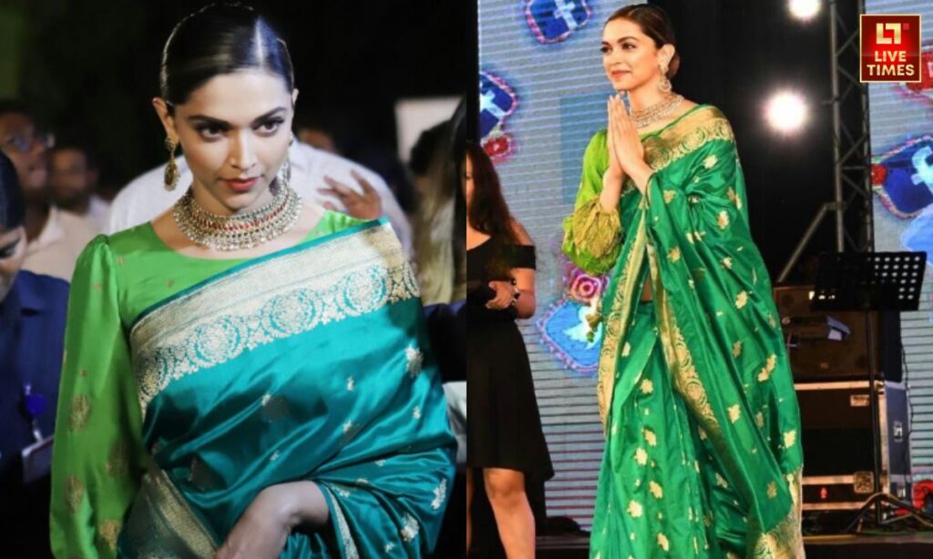 ग्रीन कलर की कांजीवरम साड़ी में दीपिका पादुकोण बेहद खूबसूरत लग रही हैं. सावन के पावन महीने में आप इस तरह के साड़ी को भी स्टाइल कर सकती हैं.