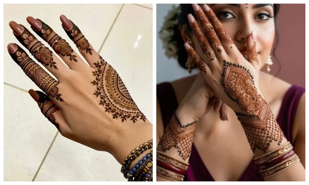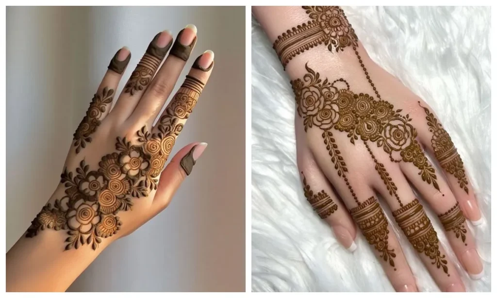फूलों के डिजाइन वाली मेंहदी हाथों में एलिगेंस एड करती है. इस साल बड़े फ्लोरल मोटिफ्स और बेलों के डिज़ाइन काफी ट्रेंड में हैं. हथेली से लेकर कलाई तक फैले ये डिज़ाइन हर मूड और आउटफिट के साथ मैच कर जाते हैं.