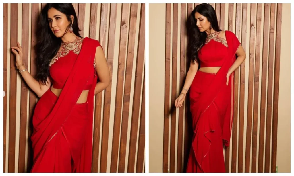 लाल रंग करवा चौथ के टाइम पर काफी ट्रेंड में रहता है. अगर आप भी कुछ रेड आउटफिट चाहती हैं, तो कैटरीना कैफ जैसी कॉन्सेप्ट साड़ी पहन सकती हैं. ये पहनने में आसान और दिखने में क्लासी होती है.