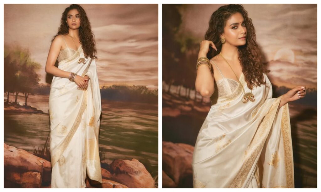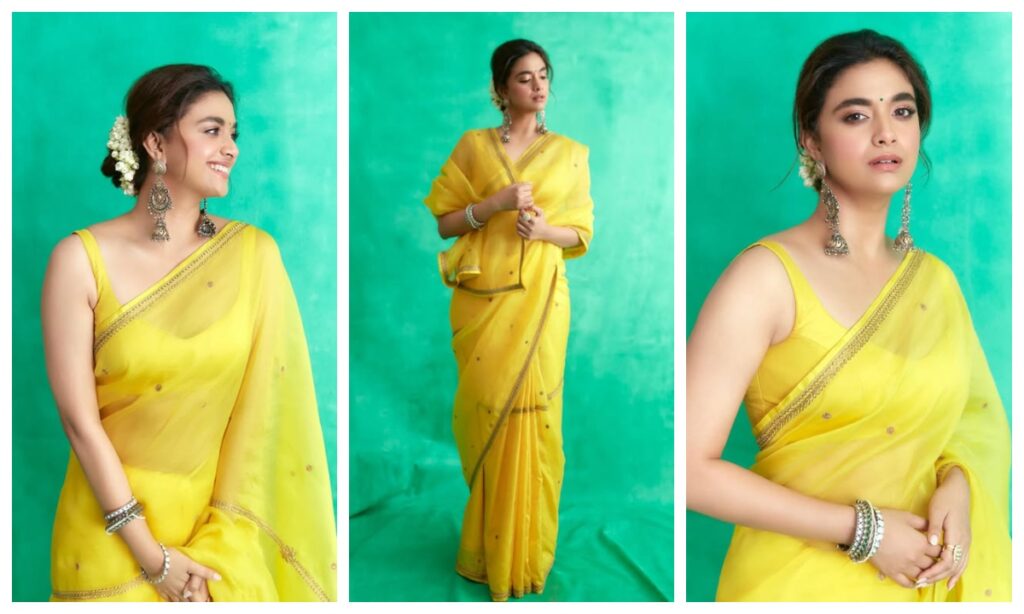 कीर्ति सुरेश का ये साड़ी लुक यंग लड़कियों को काफी पसंद आएगा. आप भी साड़ी में मॉर्डन टच देना चाहती हैं तो फिर स्ट्रेपी ब्लाउज और साड़ी कॉम्बो बेस्ट रहेगा.