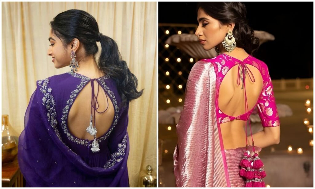 ट्रेडिशनल लेकिन कभी आउट ऑफ ट्रेंड नहीं होने वाला ये बैक ब्लाउज डिज़ाइन बहुत ही शानदार लगता है. डोरी वाले ब्लाउज को आप बीड्स या शीशे के वर्क से और शानदार बना सकती हैं. इस तरह के ब्लाउज पार्टी वियर साड़ियों पर खूब अच्छे लगते हैं.