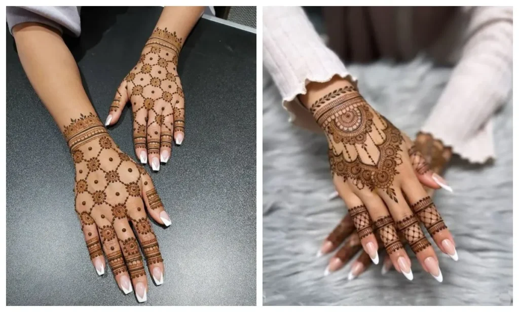 मंडाला पैटर्न वाली मेहंदी भी काफी पॉपुलर हो चुकी है. ये डिजाइन हमेशा से पसंद किए जाते रहे हैं. बैक हैंड पर बीच में मंडाला और चारों तरफ फ्लोरल मोटिफ्स आपकी हथेली को और खूबसूरत बना देंगे.