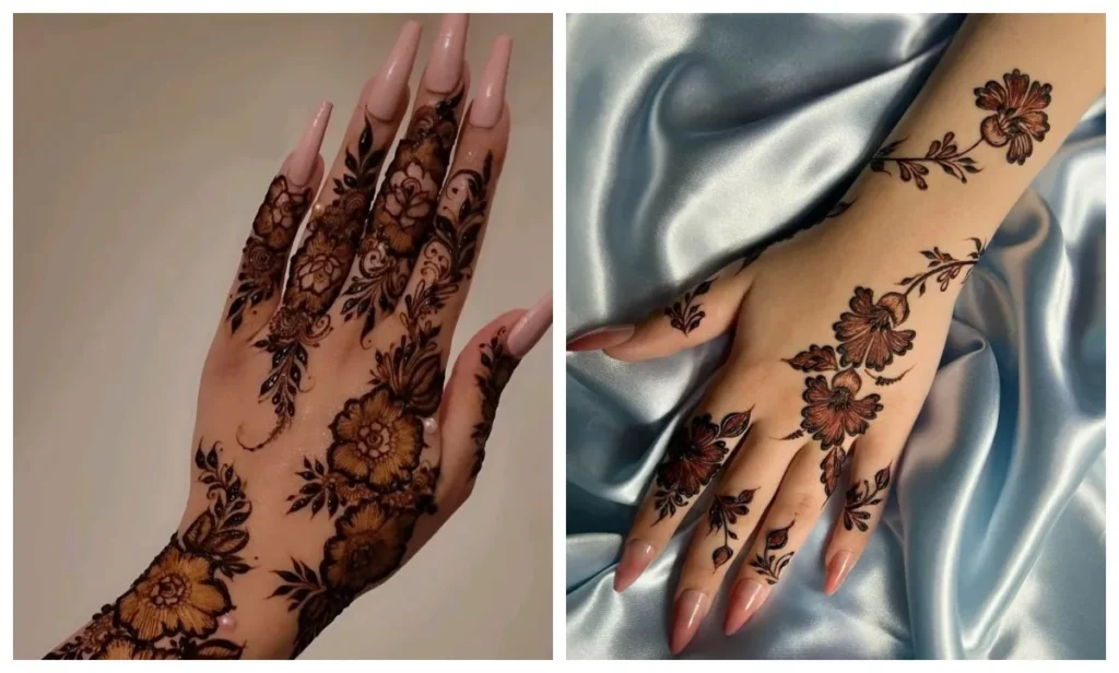अगर आप करवा चौथ के लिए सॉफ्ट और एलीगेंट लुक चाहती हैं. तो फिर प्लोरल मेहंदी डिज़ाइन चुनें. ये आपके हाथों की खूबसूरती बढ़ाने में कोई कसर नहीं छोड़ेगा.