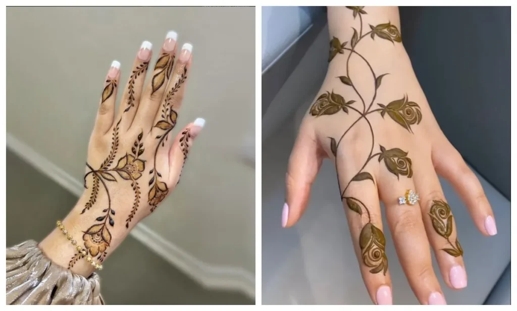 यंग और कॉलेज गर्ल्स के बीच मेहंदी के मिनिमलिस्ट डिज़ाइन काफी पॉपुलर हो चुके हैं. अगर आप भी सिंपल लुक पसंद करती हैं, तो छोटे-छोटे पैटर्न वाले इस तरह के डिज़ाइन लगवा सकती हैं. ये काफी मॉडर्न फील देते हैं.