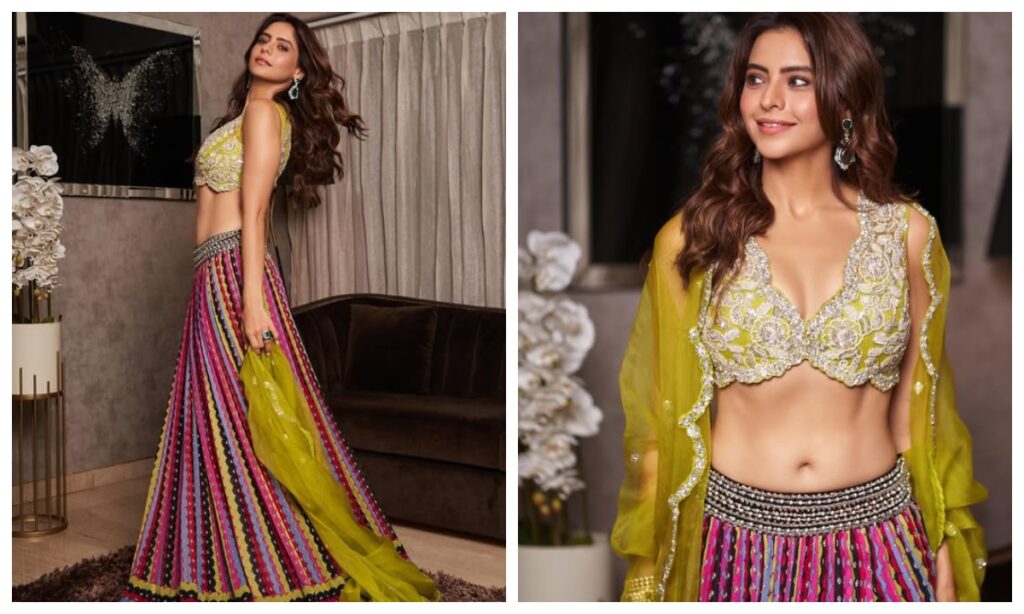 मेहंदी फंक्शन के लिए आमना शरीफ का ये लाइटवेट लहंगा काफी अच्छा है. उन्होंने एक फ्लेयर्ड कलरफुल लहंगा स्कर्ट को मेहंदी कलर की चोली और ऑर्गेंजा दुपट्टे के साथ स्टाइल किया.
