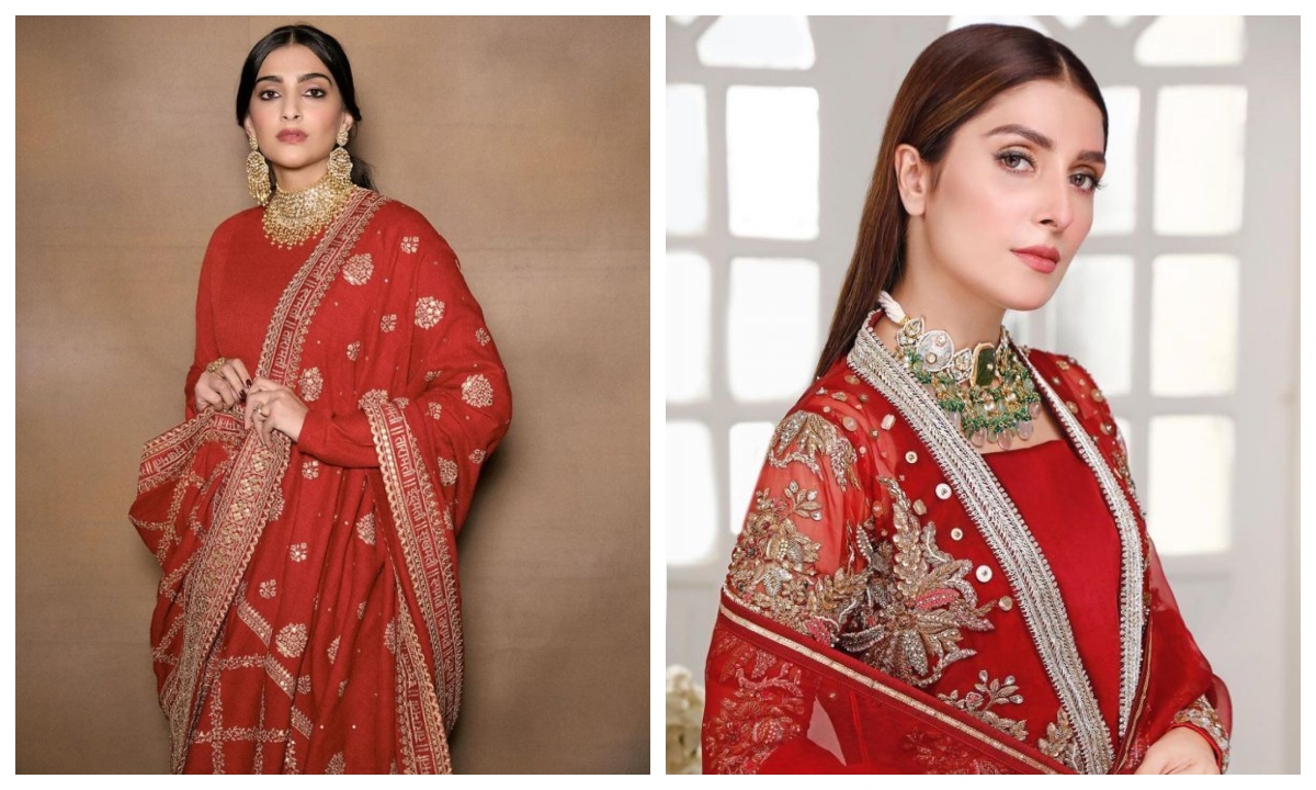 फेमस पाकिस्तानी एक्ट्रेस आयजा खान इस रेड अनारकली सूट में हसीन दिख रही हैं. बनारसी स्टाइल इस अनारकली सूट को उन्होंने चूड़ीदार पायजामी और मैचिंग दुपट्टे के साथ कैरी किया. वहीं, गोल्डन ईयररिंग्स, मैचिंग जूती, सटल मेकअप और बालों में लगे गजरे ने आयजा के लुक को और निखारा.
