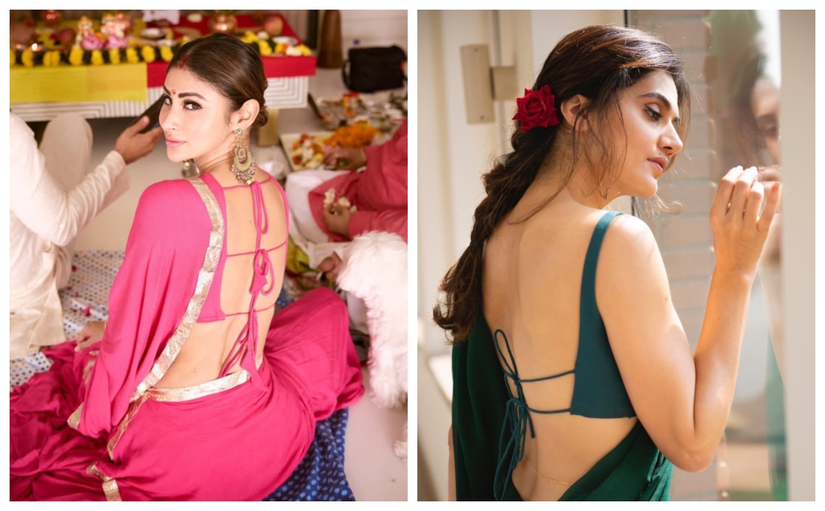अगर आप साड़ी में किसी हीरोइन की तरह बोल्ड दिखना चाहती हैं तो एक्ट्रेस तेजस्वी प्रकाश के इस लुक से आइडिया ले सकती हैं. उन्होंने अपनी प्रिंटेड साड़ी को बैकलेस डोरी ब्लाउज के साथ कैरी किया.