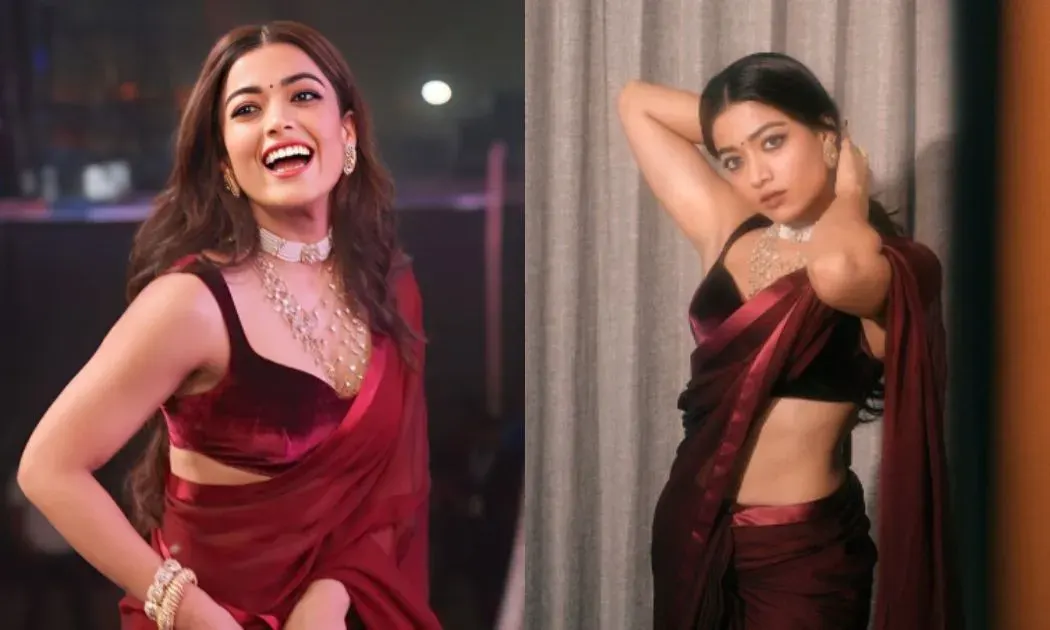 वाइन कलर की इस शिफॉन साड़ी को जो भी कैरी करेगा उसकी खूबसूरती और भी ज्यादा बढ़ जाएगी. इस तरह की साड़ी को आप पार्टी से लेकर शादी में स्टाइल कर सकती हैं.