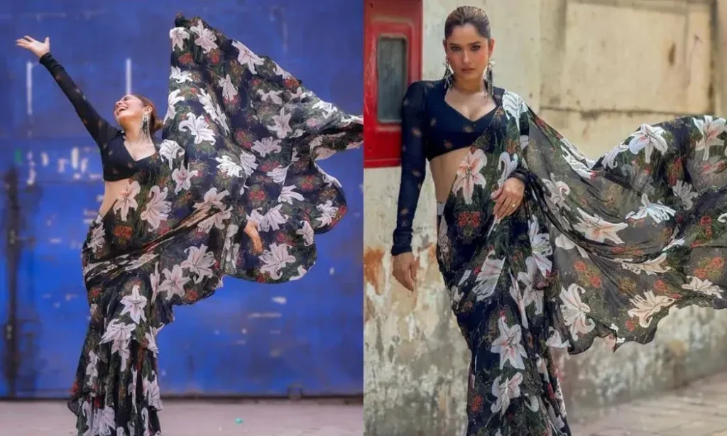 फ्लोलर प्रिंट का फैशन एक बार वापस आ गया है. इनका डिजाइन सूट के साथ-साथ साड़ी पर भी खूब जचते हैं. अंकिता की तरह इस ब्लैक कलर के साड़ी को आप बारिश के मौसम में कैरी कर सकती हैं.