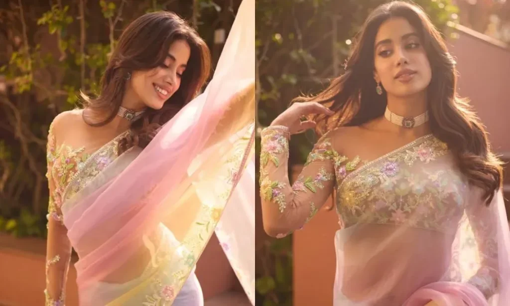 पेस्टल कलर की ये ऑर्गेंजा साड़ी बहुत क्लासी लग रही है. इसके साथ नेट का फुल स्लीव ब्लाउज उसकी खूबसूरती को और भी ज्यादा बढ़ा देता है.