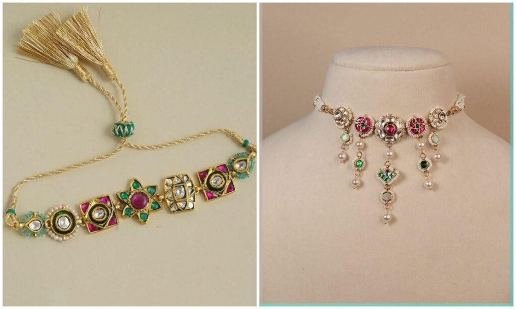 हल्का लेकिन रॉयल लुक चाहने वालों के लिए इस तरह के मिनि जड़ाऊ चोकर हार बहुत ही बढ़िया हैं. छोटे मोतियों और कुंदन से बनी इस तरह की जूलरी ट्रडिशनल लहंगे या साड़ी के साथ शानदार लगती है.