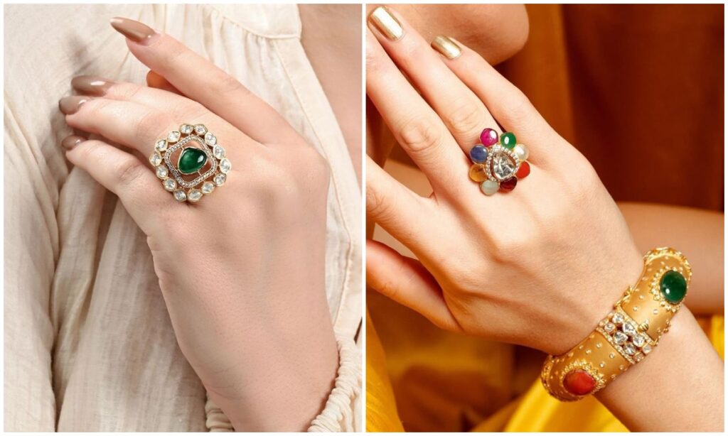लाइटवेट गोल्ड से बनी बड़े साइज़ की रिंग में पोल्की या कुंदन स्टोन जड़े हुए बहुत ही बढ़िया लगती है. इसे आप इंडियन और फ्यूजन, दोनों तरह के आउटफिट्स के साथ पेयर कर सकती हैं. इस तरह की रिंग हर लड़की को पसंद आएंगी.