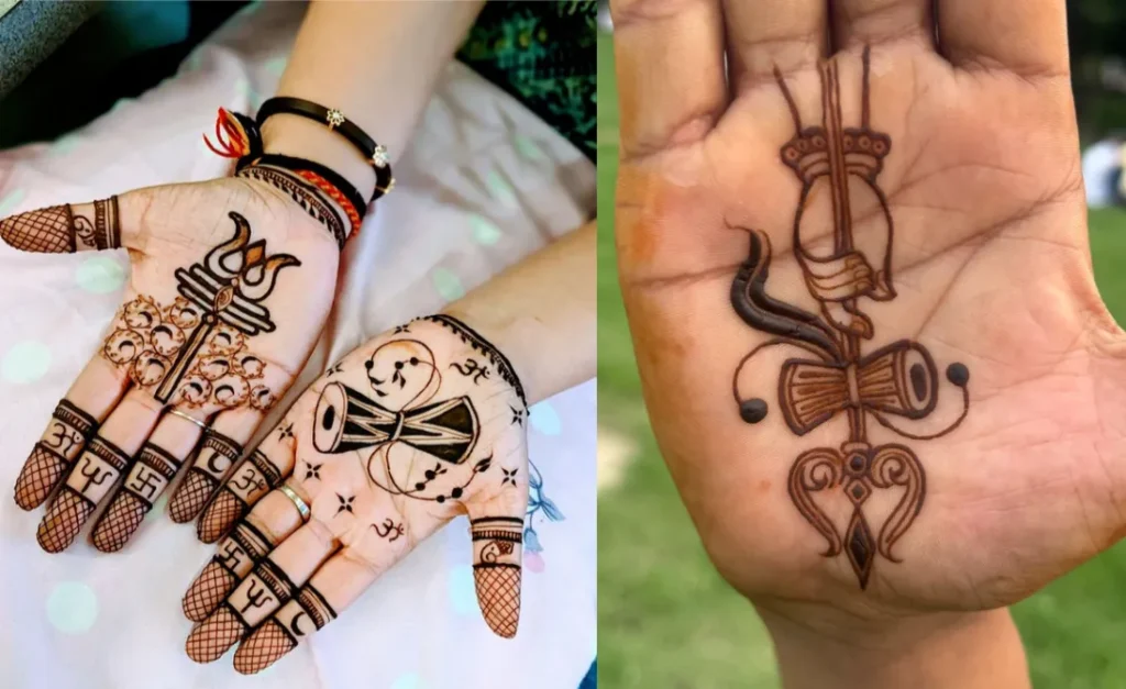 महादेव को डमरू बहुत प्रिय है. आप अपने हाथों में डमरू का सिंपल डिजाइन भी बना सकती हैं. अगर आपको कुछ सिंपल चाहिए तो यह डिजाइन अच्छी चॉइस है. कुंवारी लड़कियां यह डिजाइन जरूर ट्राई करें.