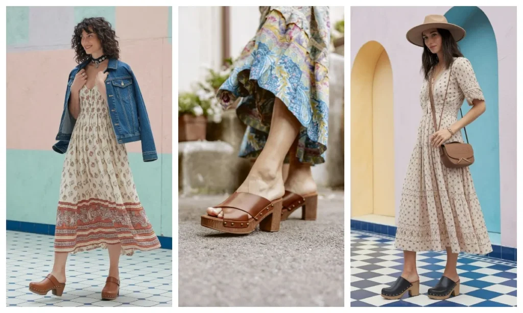 सिर्फ 90 के दशक ही नहीं, बल्कि 70s का रेट्रो स्टाइल भी फैशन की दुनिया में कमबैक कर चुका है. लकड़ी के सोल वाले क्लॉग्स या स्टडेड लेदर सैंडल्स इस टाइम फैशन लवर्स की पहली पसंद हैं. इन्हें किसी फ्लोरल मिडी ड्रेस के साथ पहनें और अपना खुद का एक चिक लुक क्रिएट करें.