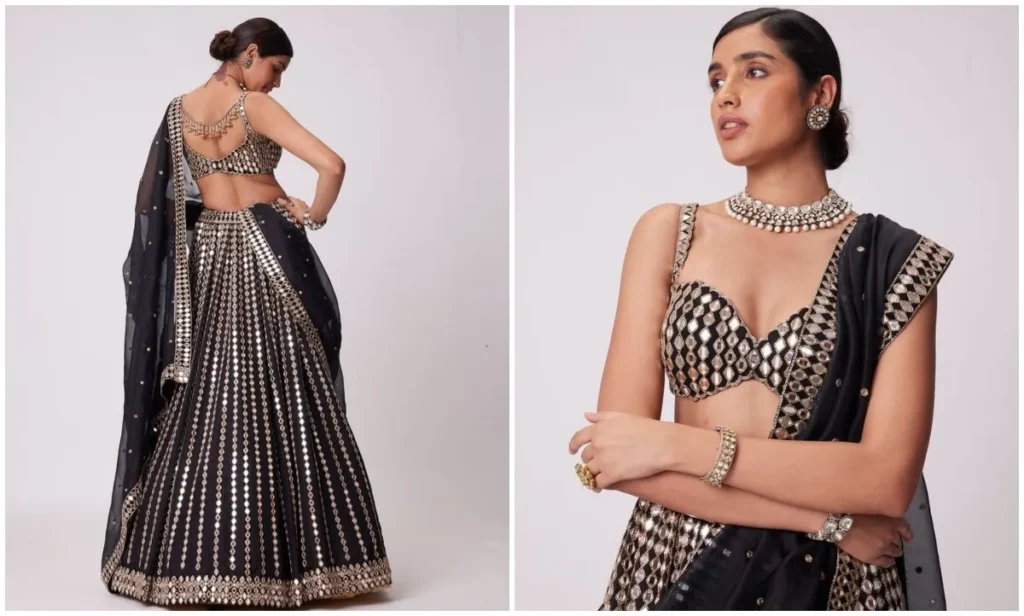 ब्लैक मिरर वर्क लहंगा