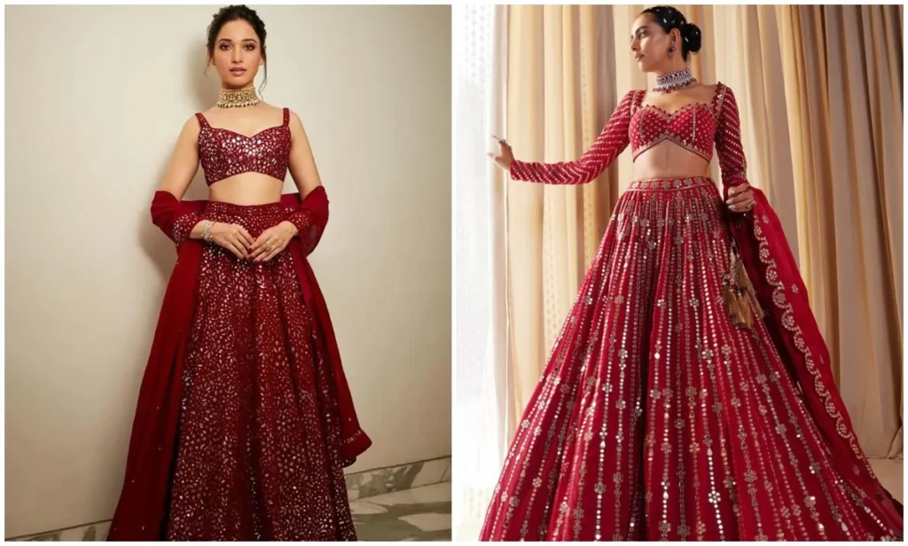 लाल रंग शादियों के सीजन में खूब डिमांड में रहता है. दुल्हन से लेकर उसकी सहेलियों के लिए भी ये रंग हमेशा से एक क्लासिक चॉइस रहा है. मिरर वर्क और ब्राइट रेड टोन वाले ये खूबसूरत लहंगे हर फंक्शन के लिए हिट हैं.