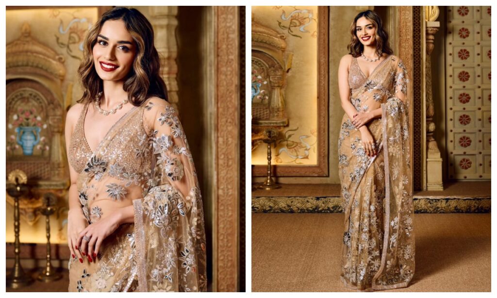 मानुषी छिल्लर ने अपनी गोल्डन नेट साड़ी को मैचिंग कलर के सीक्वेंस ब्रालेट ब्लाउज के साथ स्टाइल किया था. उनका ये साड़ी लुक समर वेडिंग के लिए परफेक्ट है.