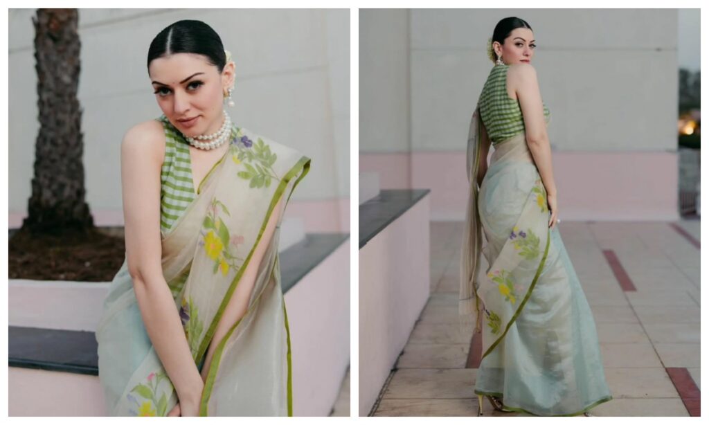 साड़ी में भी फॉर्मल लुक मिल सकता है, बस आपको ब्लाउज डिजाइन पर फोकस करना है. इसके लिए आप हंसिका मोटवानी के इस साड़ी लुक से आइडिया ले सकती हैं.