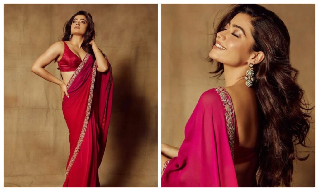 रश्मिका मंदाना कई बार साड़ी में फैन्स का दिल जीत चुकी हैं. इस बार उन्होंने पिंक कलर की जॉर्जट साड़ी को स्लीवलेस ब्लाउज के साथ पेयर किया. उनका ये लुक आपको भी जरूर पसंद आएगा.