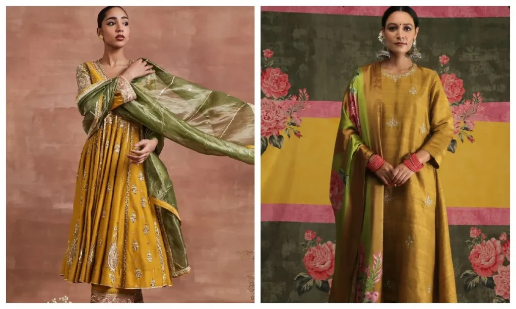पीले और मस्टर्ड शेड्स त्यौहारों के लिए परफेक्ट रहते हैं. मस्टर्ड सिल्क कुर्ती पर मिनिमल गोल्डन ज़री वर्क और मैचिंग दुपट्टा आपको सुबह की पूजा से लेकर शाम की पार्टी तक रॉयल लुक देगा.
